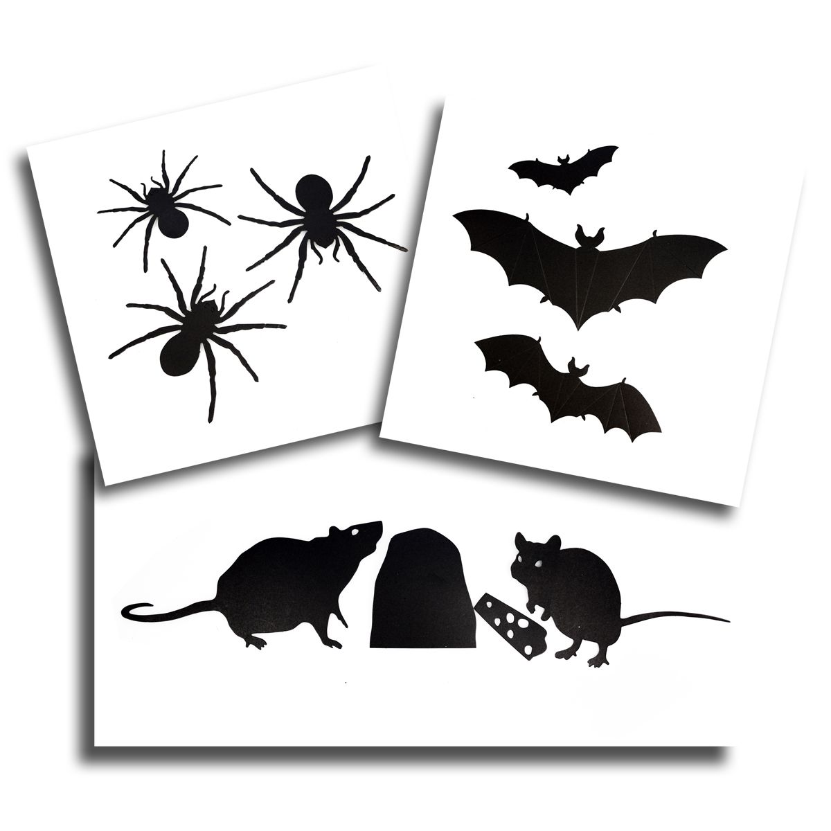 Dostępne: 25 Sztuk Lub zamów telefoniczne: 690 216 578Dekoracje ścienne ze zwierzętami do wyboru: myszami, pająkami lub nietoperzami. Są to naklejki, które z łatwością można umieścić na ścianie, oknie lub lustrze. Straszydła doskonale sprawdzą się do dekoracji przyjęć z okazji Halloween oraz imprez tematycznych. W opakowaniu znajduje się 12 sztuk naklejek.