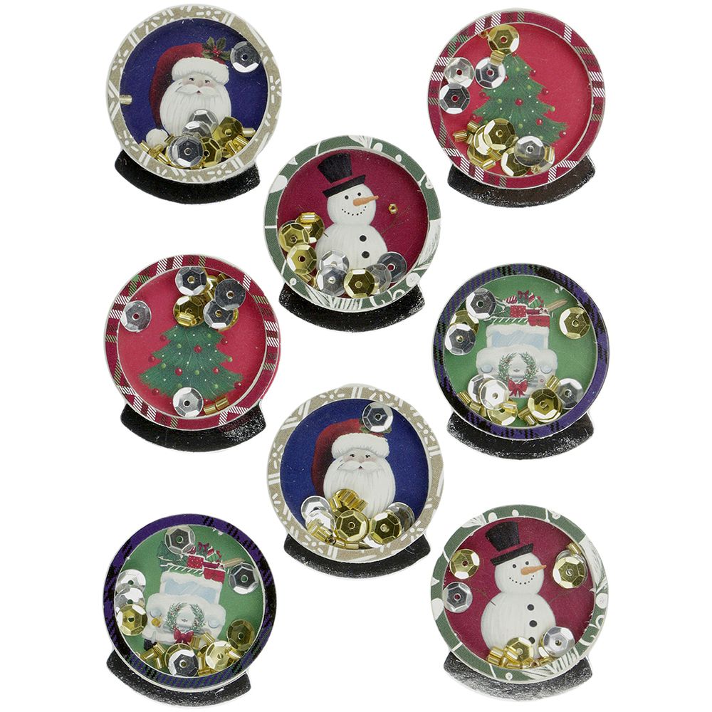 Naklejki 3D. Kształty: kule z cekinami z motywem świątecznym, kolory: mix. 8 szt.