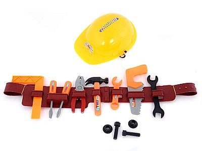 zestaw narzędzi z kaskiem i pasem; 60x17x9cm, siatka