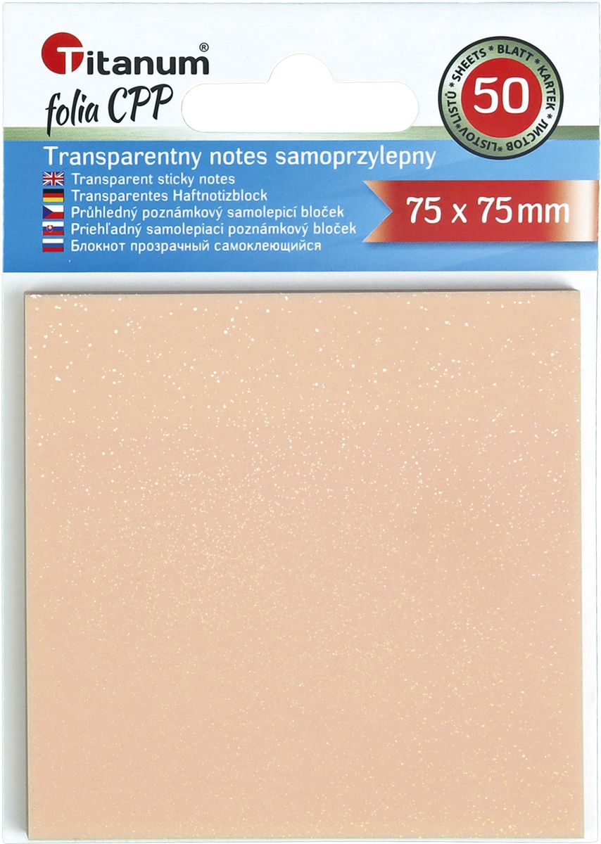 Notes samoprzylepny (karteczki) transparentne, z polipropylenu 75x75 pomarańczowy 50k [mm:] 75x75 Titanum