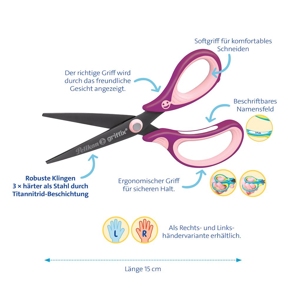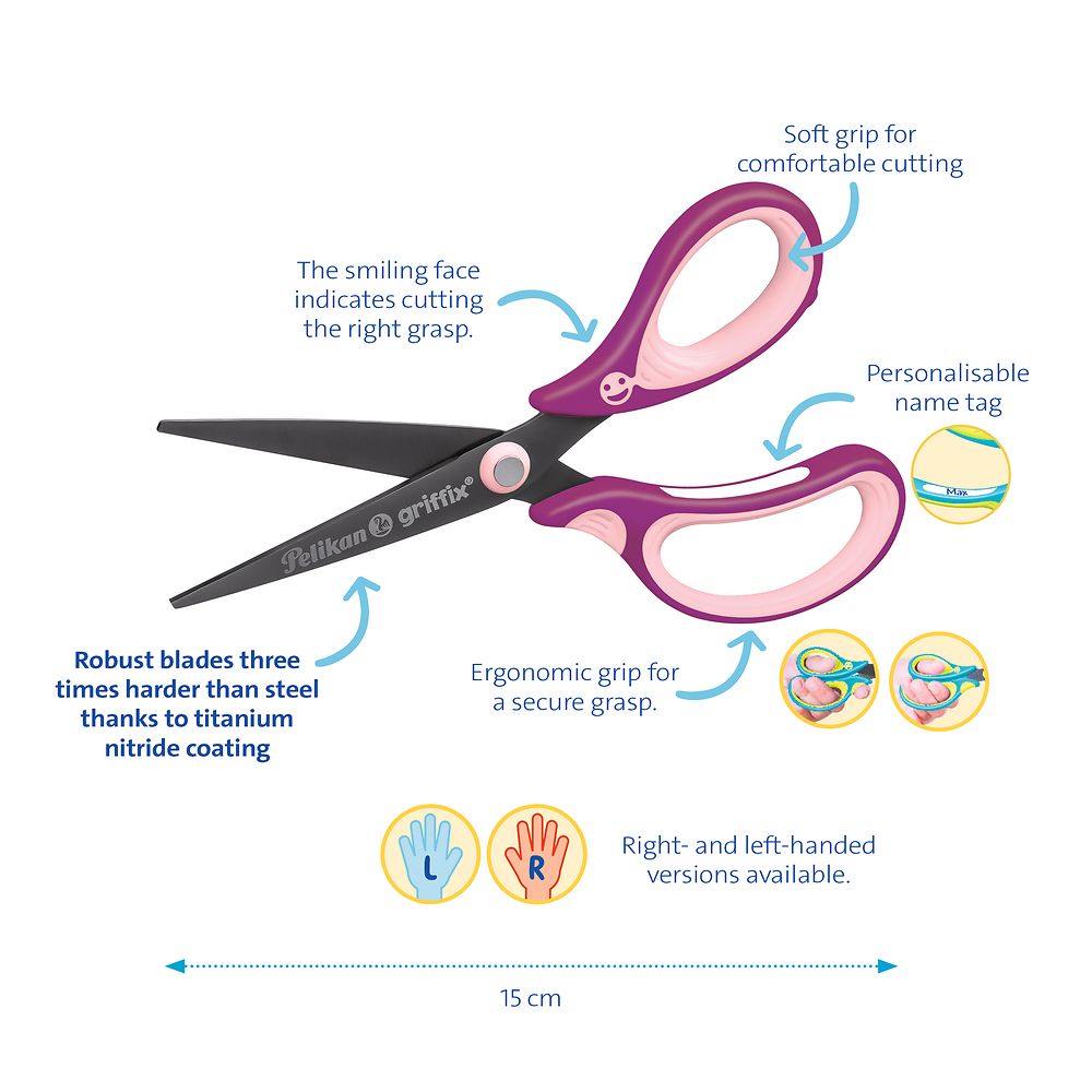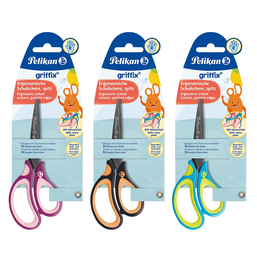 Nożyczki Griffix spiczaste praworęczne mix Pelikan (300009549)