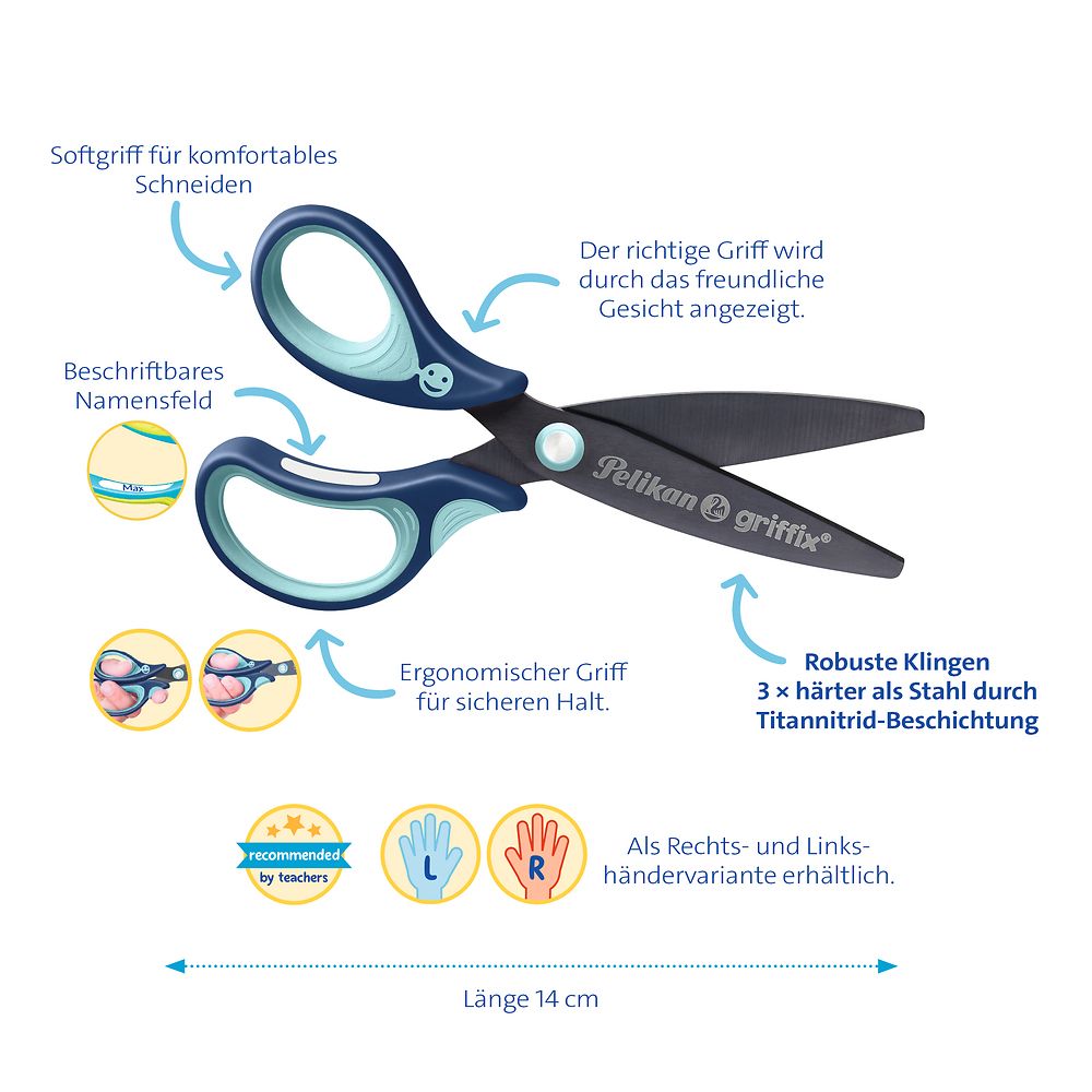 Nożyczki Griffix zaokrąglone leworęczne niebieskie Pelikan (300008592)