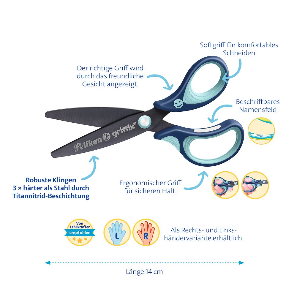 Nożyczki Griffix zaokrąglone praworęczne mix Pelikan (300009548)
