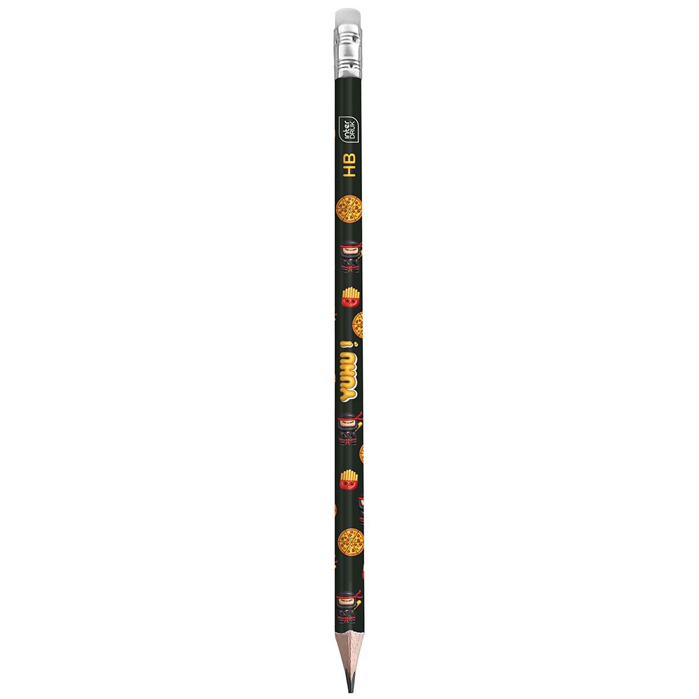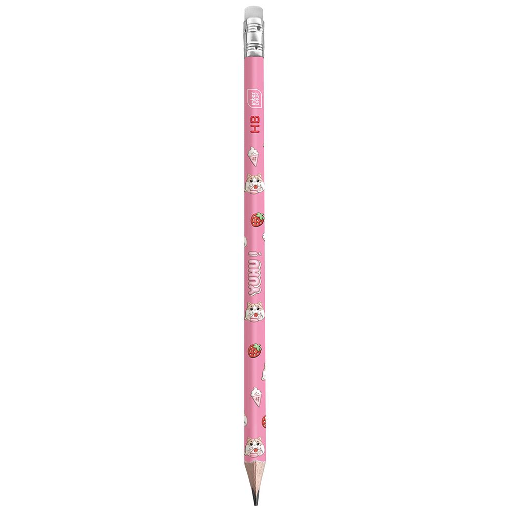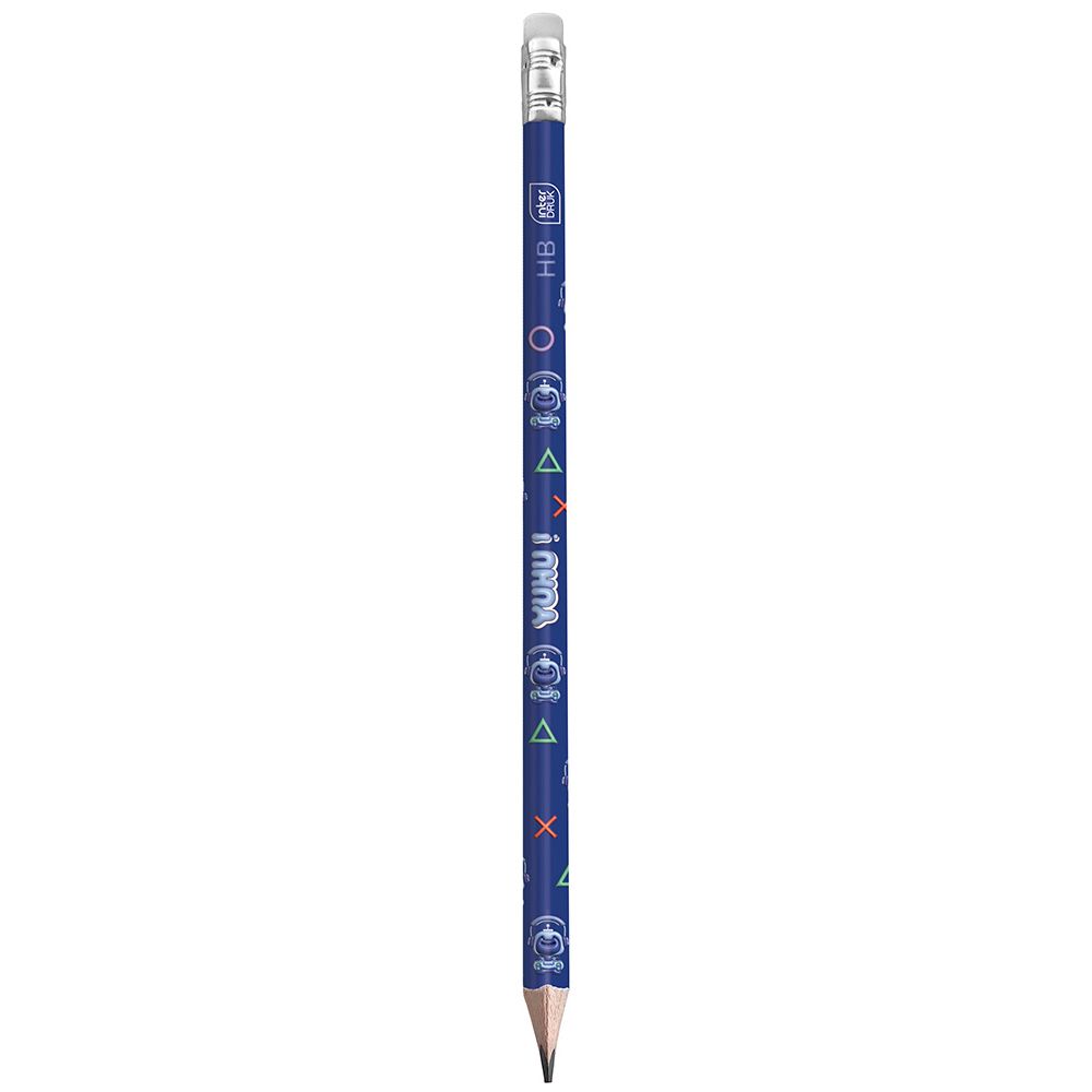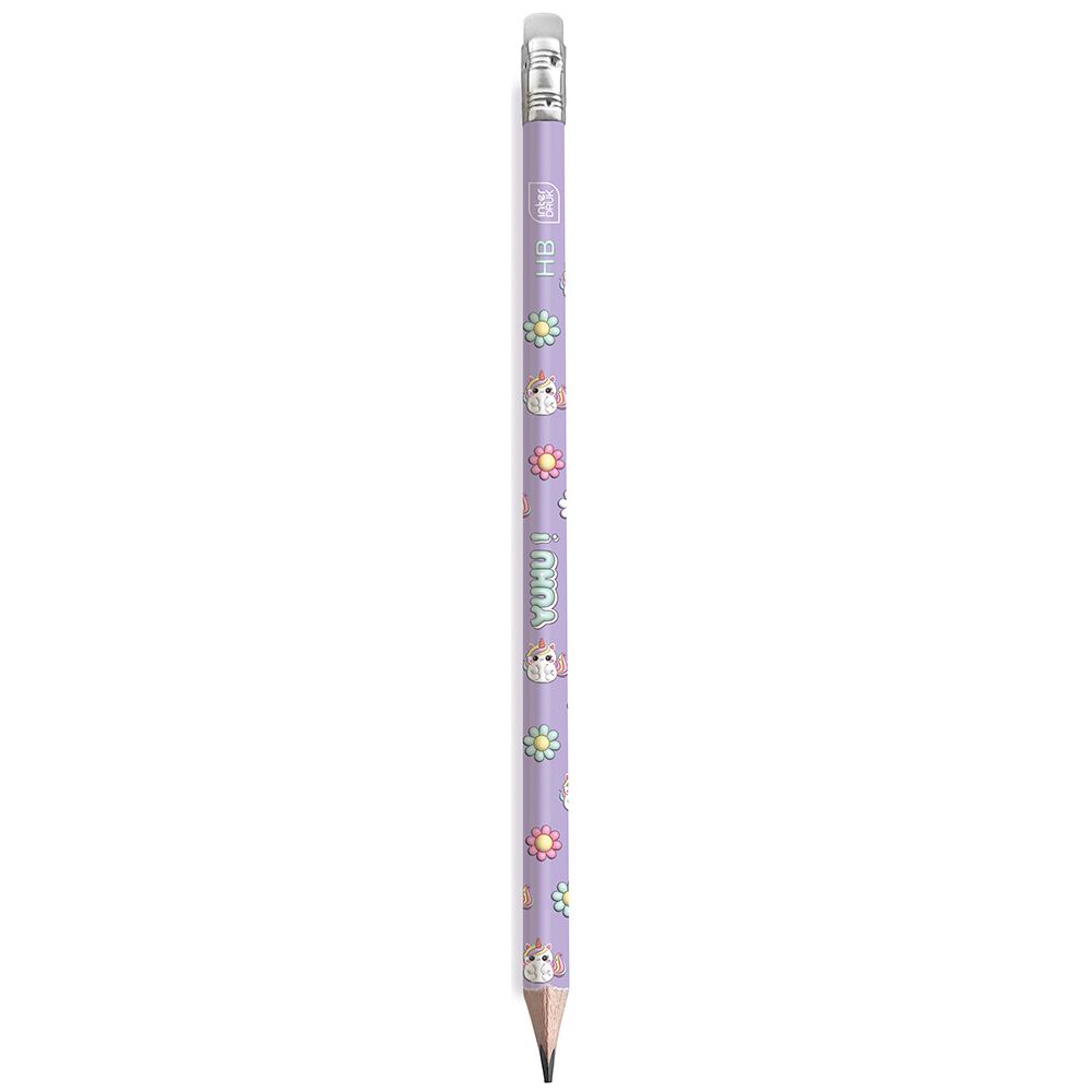 Ołówek HB. Okrągły profil. Zakończony kolorową gumką. Matowe wykończenie. Wykonany z wysokiej jakości czarnego drewna. Do wyboru 4 wzory z nadrukiem. 36 szt. w kubiku.