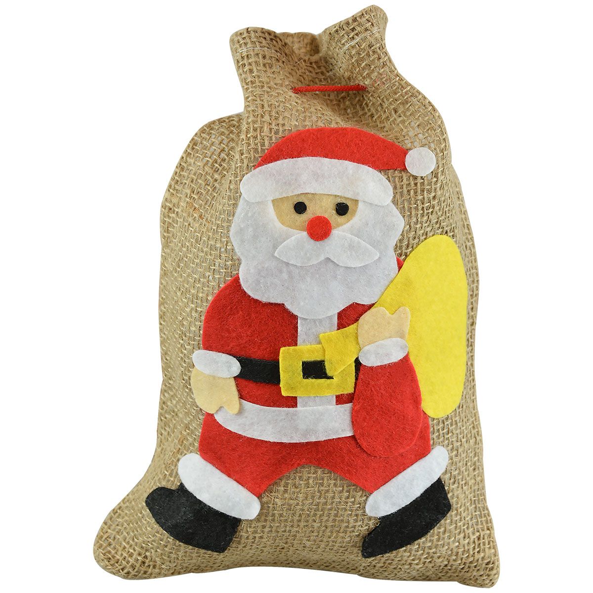 Dostępne: 29 Sztuk Lub zamów telefoniczne: 690 216 578Worek na prezenty wykonany z naturalnego materiału jutowego. Na przodzie produktu znajduje się aplikacja dekoracyjna z filcu. Produkt wyposażony w sznurek ściągający umożliwiający zawiązanie worka. Worek może służyć jako element dekoracyjny lub jako wyjątkowe opakowanie prezentu. Wymiary worka to 26x20 cm.