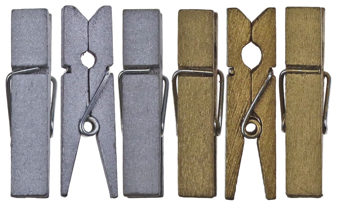 Dostępne: 232 Sztuk Lub zamów telefoniczne: 690 216 578Klamerki drewniane, 7 x 35 mm, 2 kolory: złote, srebrne. 10 sztuk.