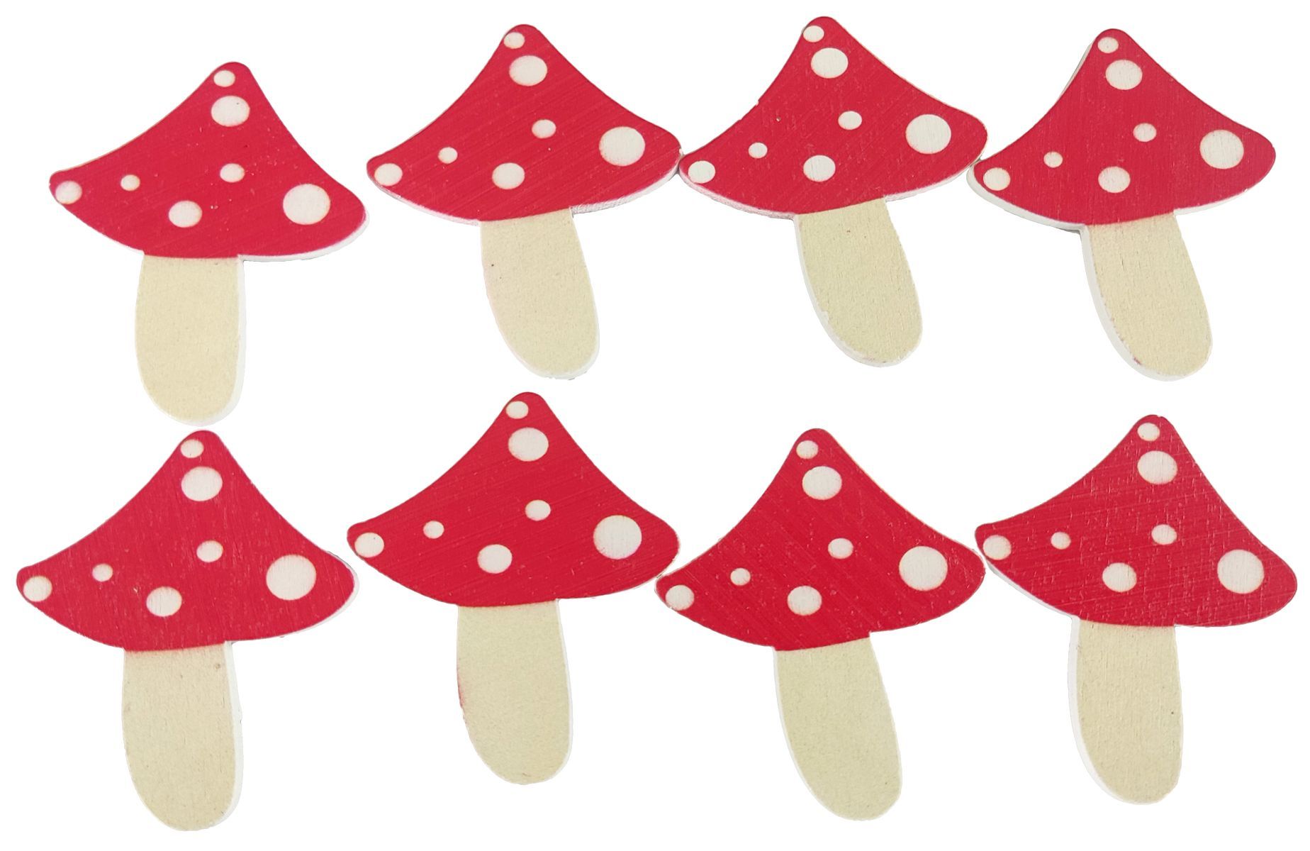 Drewniane muchomory, wymiary: 40x50 mm. 8 sztuk.
