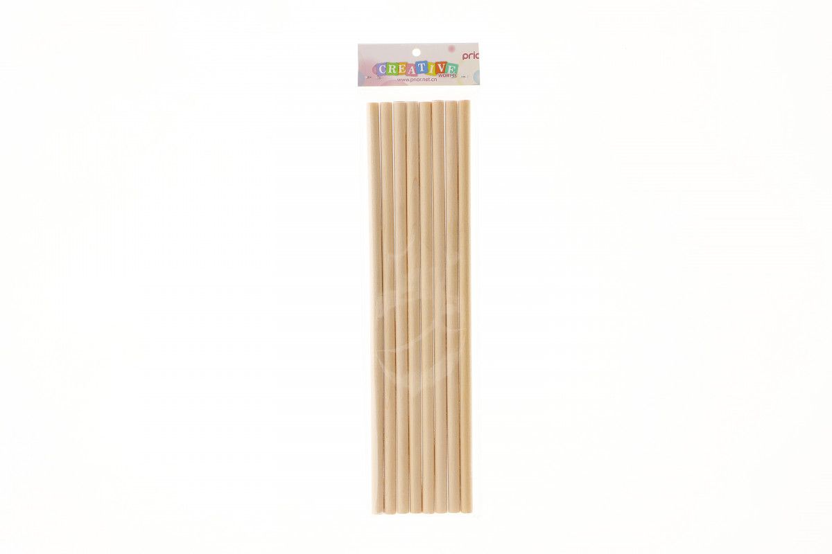 Dostępne: 1799 Sztuk Lub zamów telefoniczne: 690 216 578Drewniane patyczki, okrągłe, średnica 9 mm, długość 30 cm, naturalne. 8 sztuk.