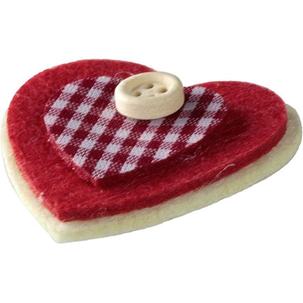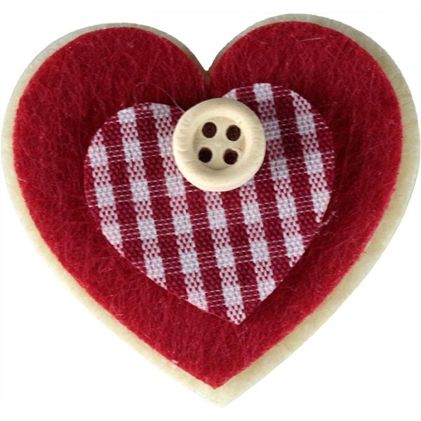 Dostępne: 386 Sztuk Lub zamów telefoniczne: 690 216 578Aplikacje z filcu w kształcie serca, z ozdobnym drewnianym guzikiem. Wymiary: 40x40 mm, czerwono-beżowe. Opakowanie: 6 szt.