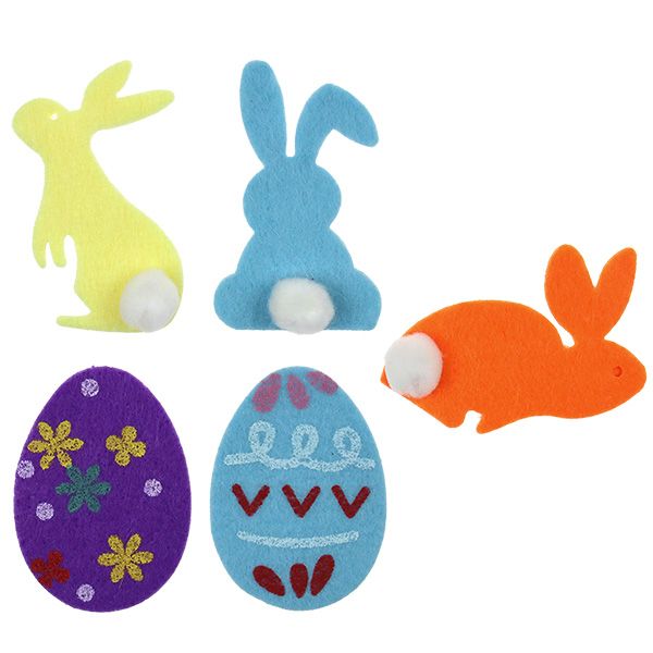 Dostępne: 42 Sztuk Lub zamów telefoniczne: 690 216 578Naklejki filcowe, wzory: zajączki 3 wzory, pisanki 3 wzory. 12 sztuk.