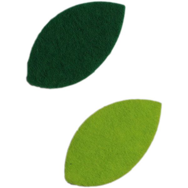 Dostępne: 533 Sztuk Lub zamów telefoniczne: 690 216 578Naklejki filcowe. Wzór: liście 40 x 22 mm, jasnozielone, zielone. 50 sztuk.