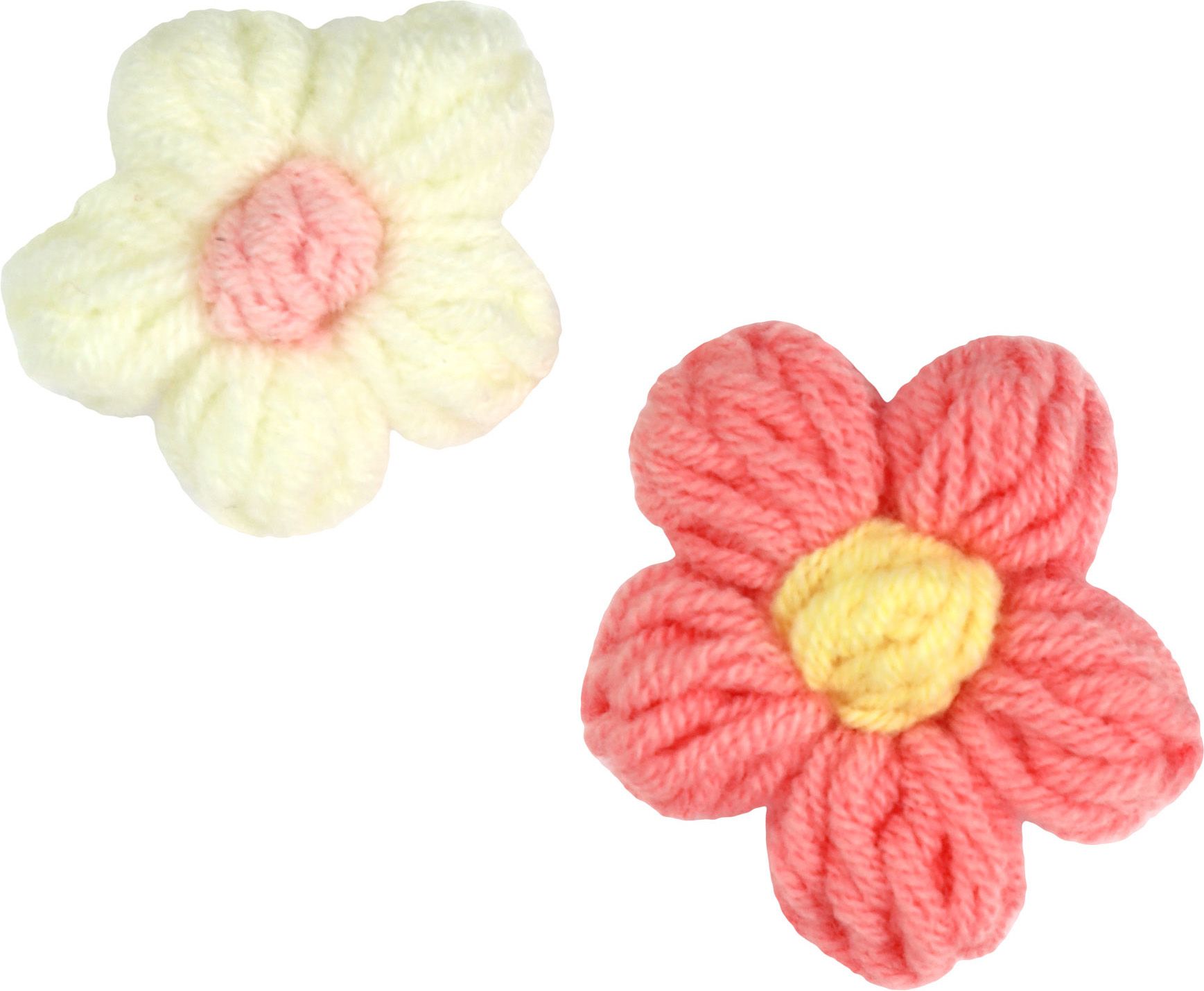 Dostępne: 266 Sztuk Lub zamów telefoniczne: 690 216 578Kwiatki włóczkowe, średnica 45 mm, kolory: różowe, białe. 4 sztuki.