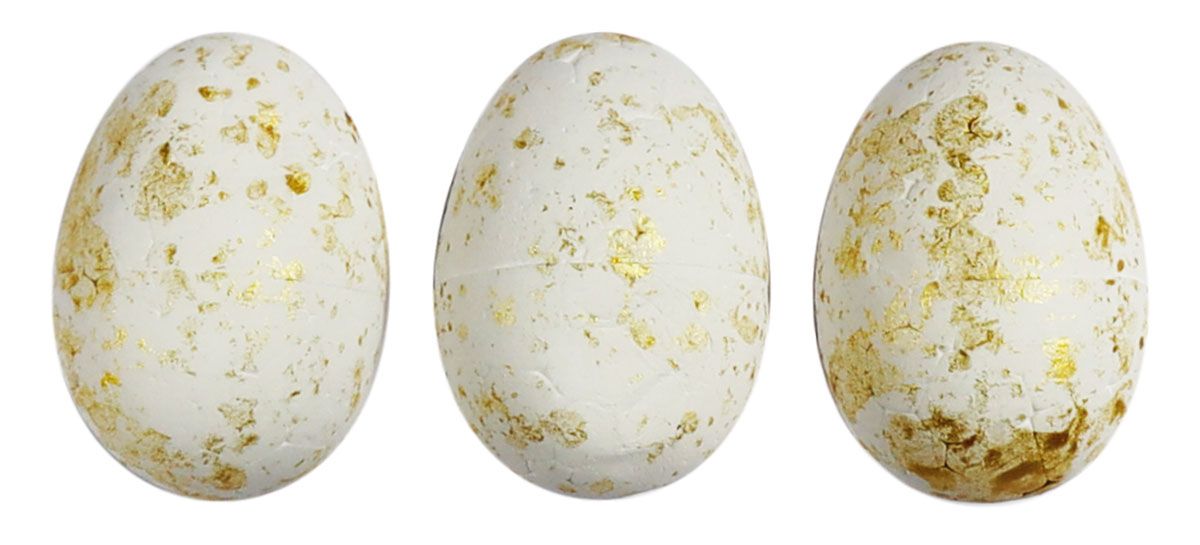 Jajka styropianowe, wymiary: 18 x 25 mm, nakrapiane, kolor: biało-złote. 50 sztuk.