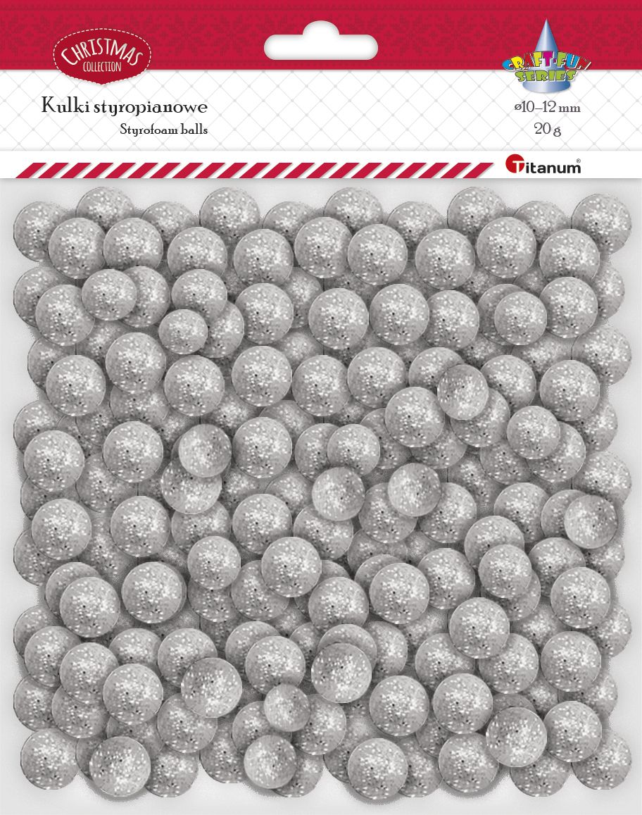 Dostępne: 1069 Sztuk Lub zamów telefoniczne: 690 216 578Dekoracyjne polistyrenowe kuleczki, mix rozmiarów: 10-12 mm. Brokatowe srebrne. Opakowanie 20 g.