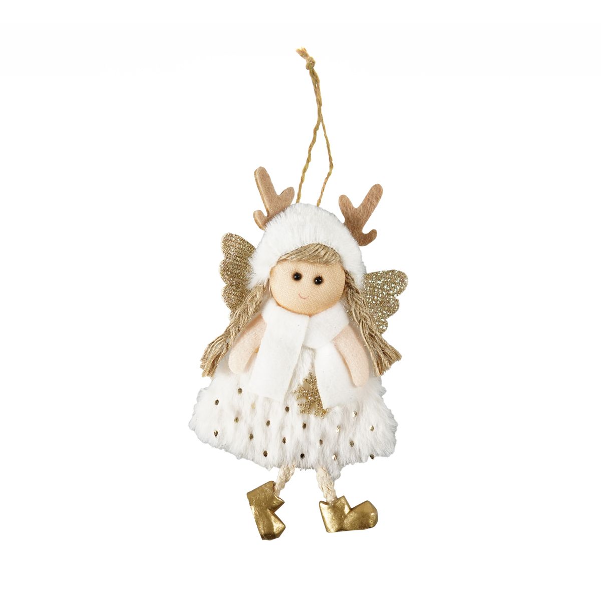 Dostępne: 6 Sztuk Lub zamów telefoniczne: 690 216 578Świąteczna zawieszka dekoracyjna w kształcie aniołka. Dostępna w trzech wariantach kolorystycznych – białym, różowym oraz szarym. Ozdoba zawiera błyszczące elementy brokatowe. Sukienka oraz czapeczka aniołka została wykonana z materiału imitującego futerko. Nóżki są ze sznurka, nieusztywnione. Dekoracja zawiera sznurek umożliwiający powieszenie ozdoby. Wymiar zawieszki: 15 cm.