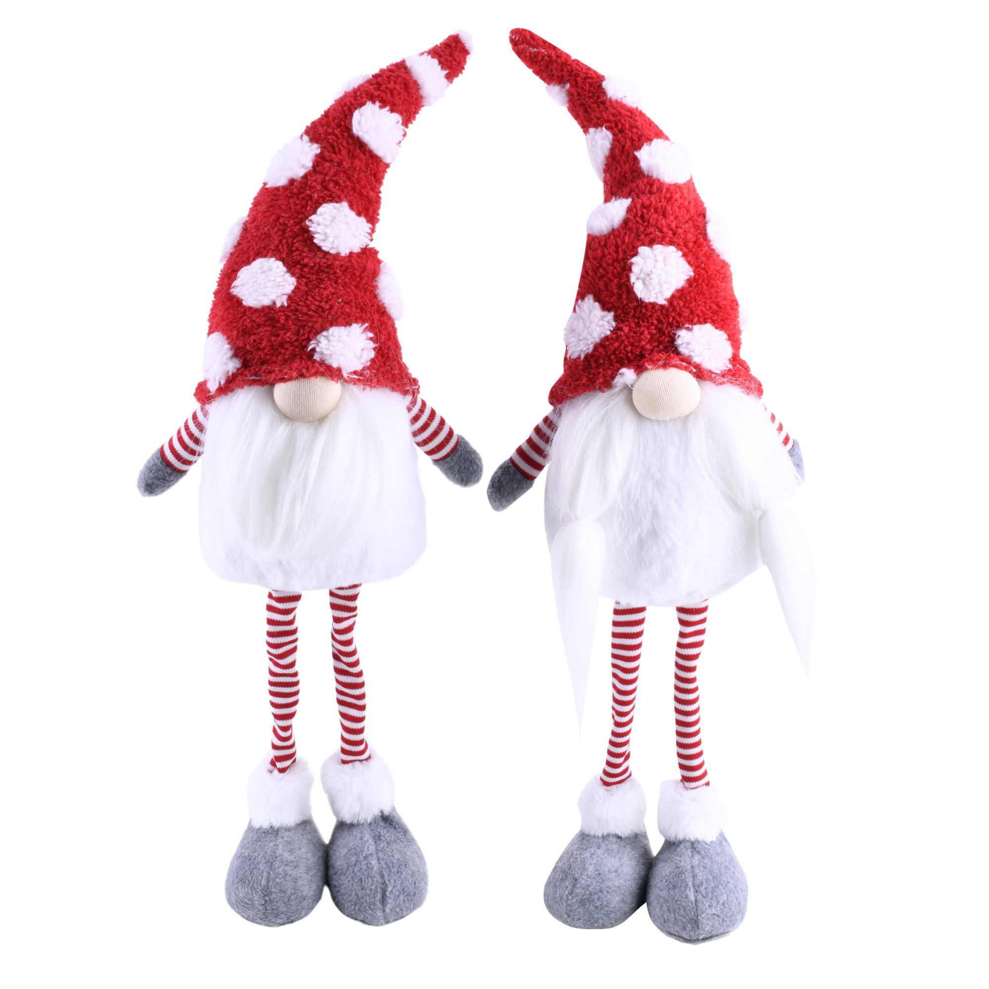 Ozdoba świąteczna gnom z brodą i czapką w kropki 18x10x55 Home And Garden (6854)