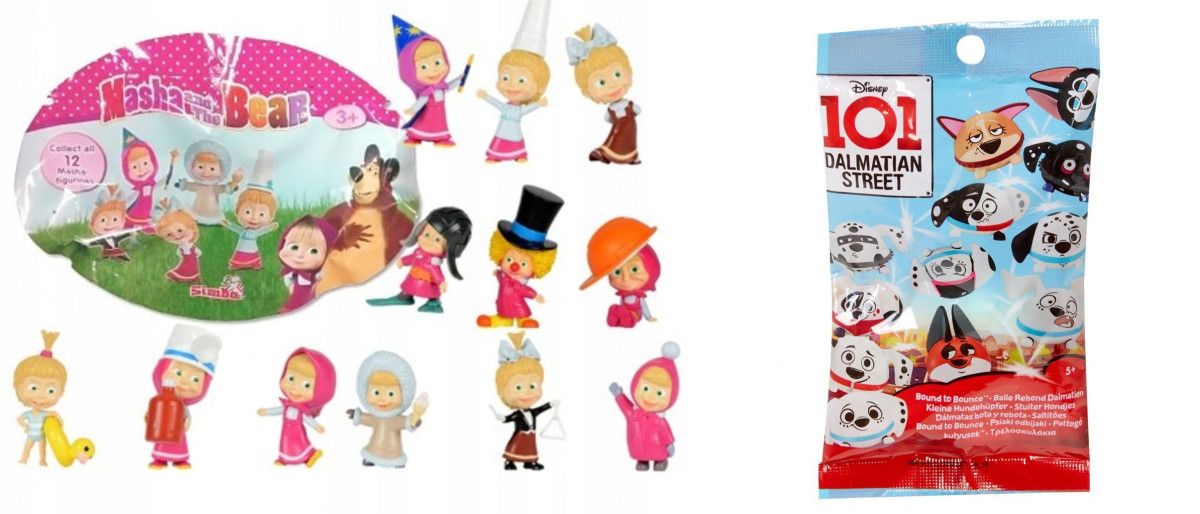 Figurka z odwzorowanymi postaciami Maszy w 12 różnych wcieleniach i strojach z lubianej przez dzieci bajki animowanej Masza i Niedźwiedź opowiadającej o przygodach dziewczynki Maszy i cyrkowego niedźwiedzia, którzy się zaprzyjaźnili i przeżywają razem niezwykłe przygody.