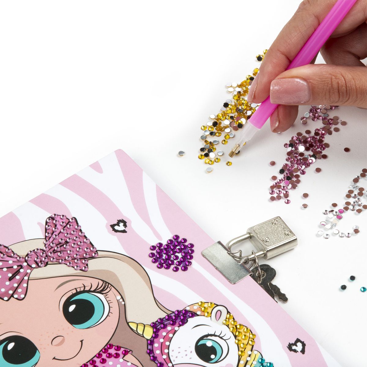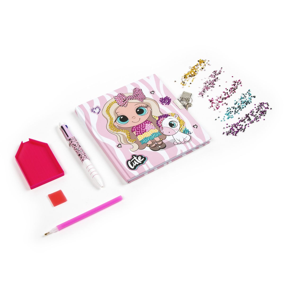Dostępne: 5 Sztuk Lub zamów telefoniczne: 690 216 578Zestaw składa się z pamiętnika, długopisu 3 kolorowego (czarny, czerwony, niebieski), plastikowego rylca do nakładania diamentów, wosku, tacki oraz ponad 500 diamentów w 5 różnych kolorach. Poszczególne elementy okładki mogą zostać samodzielnie ozdobione diamentami. Pamiętnik posiada kłódkę oraz 60 zadrukowanych kartek.