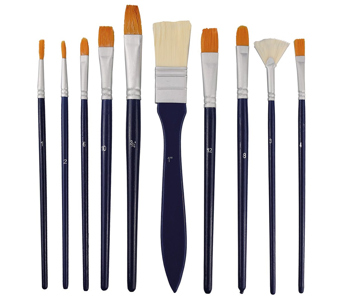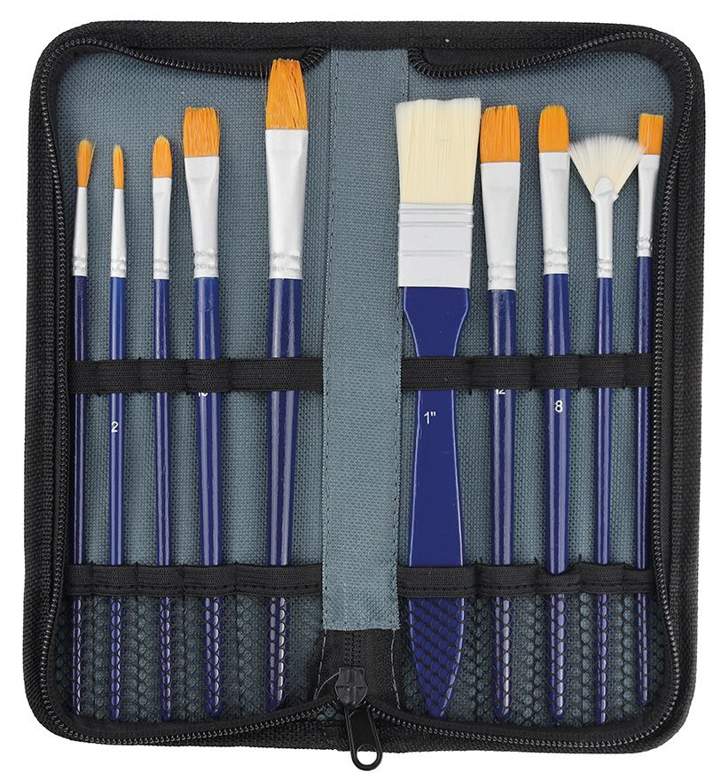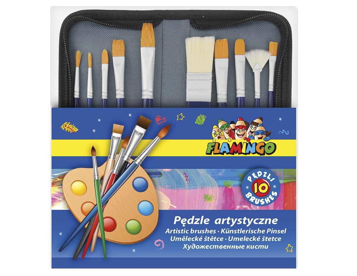 Dostępne: 116 Sztuk Lub zamów telefoniczne: 690 216 578Komplet 10 pędzli pakowany w praktyczne etui zapinane na suwak, zawartość: 1 szeroki pędzel płaski w rozmiarze 1"", 4 pędzle płaskie, proste w rozmiarach: 3/4"", 4, 10, 12, 2 pędzle płaskie, zaokrąglone w rozmiarach: 6, 8, 1 pędzel płaski, wachlarzowy w rozmiarze: 3, 2 pędzle okrągłe w rozmiarach: 1, 2