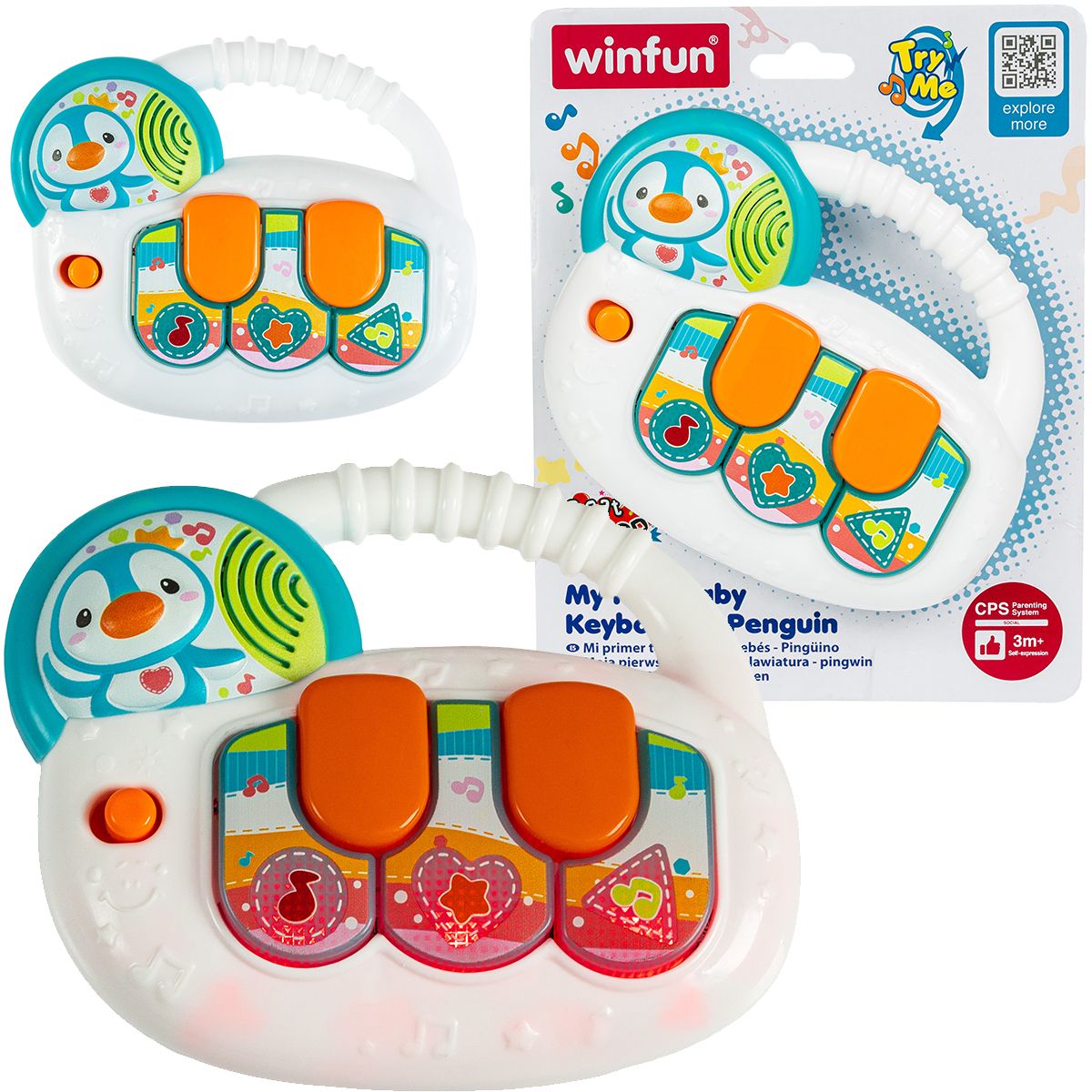 Przyjemna kolorystyka, motyw pingwinka na głośniku dodatkowo uatrakcyjnia zabawkę.