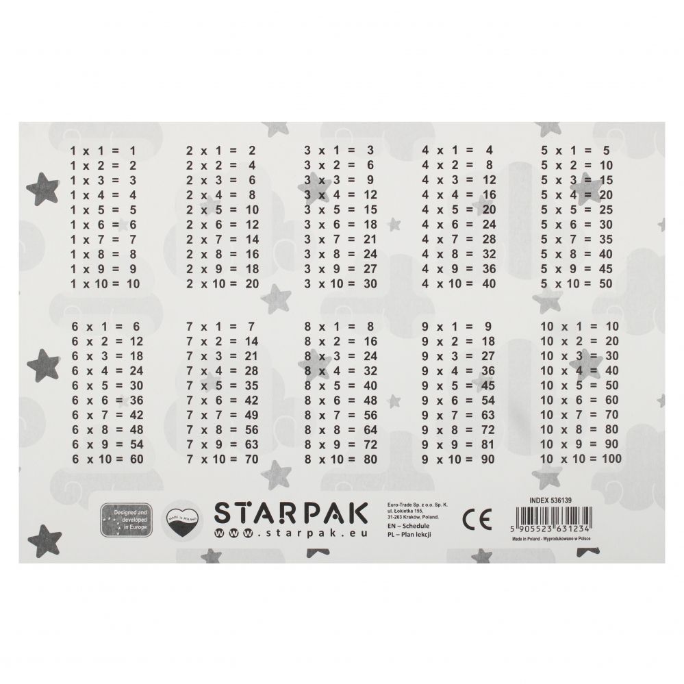 Dostępne: 32 Sztuk Lub zamów telefoniczne: 690 216 578Cechy produktu: Plan lekcji jest niezbędnym elementem wyposażenia szkolnej wyprawki. Plan z kolekcji STARPAK Unicorn, zawiera podział na pięć dni tygodnia z 8 wierszami do wpisu, dzięki czemu żaden uczeń nie zapomni o potrzebnych mu danego dnia książkach czy zeszytach, dodatkowo na odwrotnej stronie posiada tabliczkę mnożenia. Przyjazna grafika sprawi, że każdy dzień w szkole będzie dobrze zaplanowany i udany. Zapoznaj się również z innymi produktami Starpak Plan lekcji wykonany z papieru. Wyprodukowany w Polsce. Pakowany w folię po 25 sztuk. Wymiary produktu szer. x wys. cm : 23x16. Waga produktu w opakowaniu kg : 0,23 kg. W kartonie po 750 szt.
