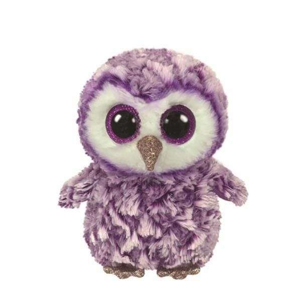 Maskotka Beanie Boos to purpurowo-biała sowa, o imieniu Moonlight. Wykonana z miękkiego pluszu o pięknych, brokatowych, fioletowych oczach. Ma doszyte skrzydełka, dziób i ogonek. Wielkość maskotki - 24 cm. Maskotka idealna do zabawy i przytulania dla każdego dziecka. Wymiary produktu: 24x14x11cm