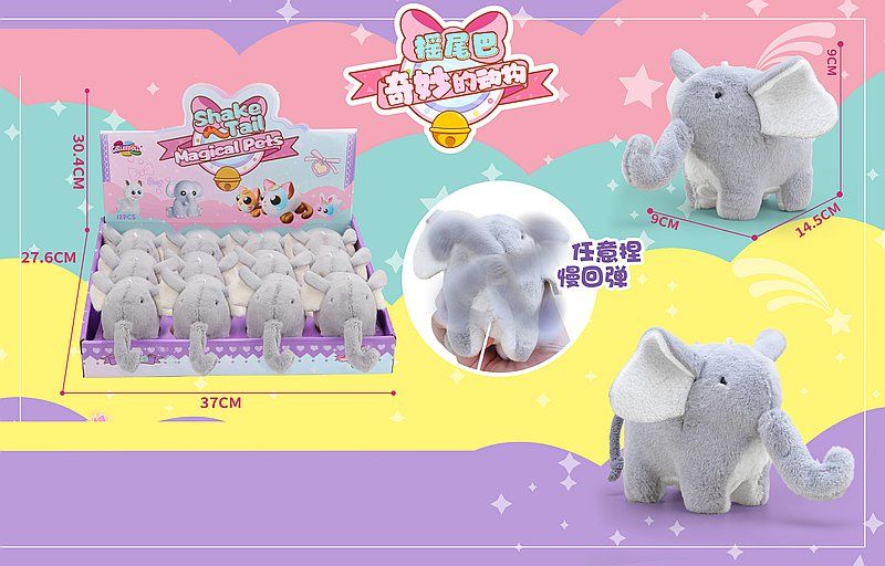Dostępne: 2 Sztuk Lub zamów telefoniczne: 690 216 578słoń pluszowy kręcący trąbą, 14,5x9x9cm, display 12szt.