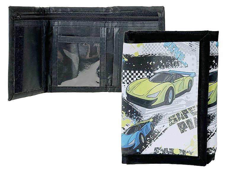 portfel chłopięcy, wzór auta; 11,5x8cm