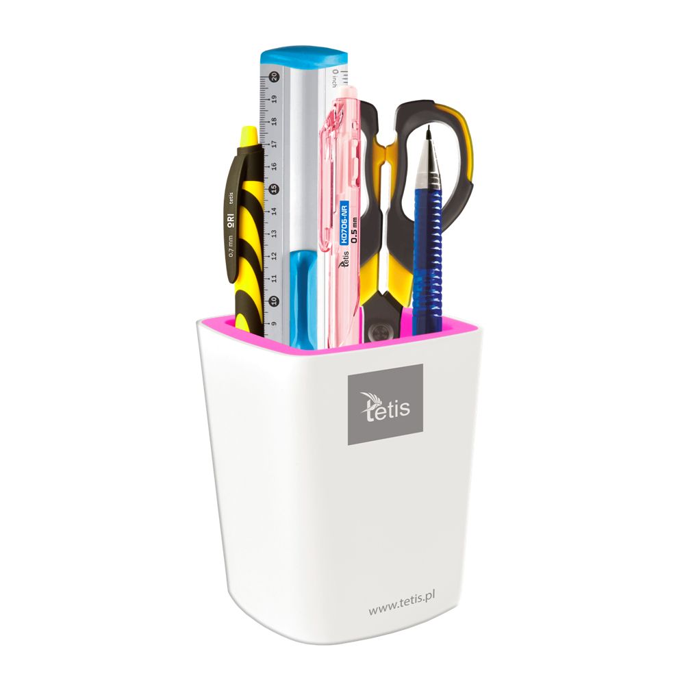 Przybornik na biurko różowy biały plastik Tetis (BV405 (R))