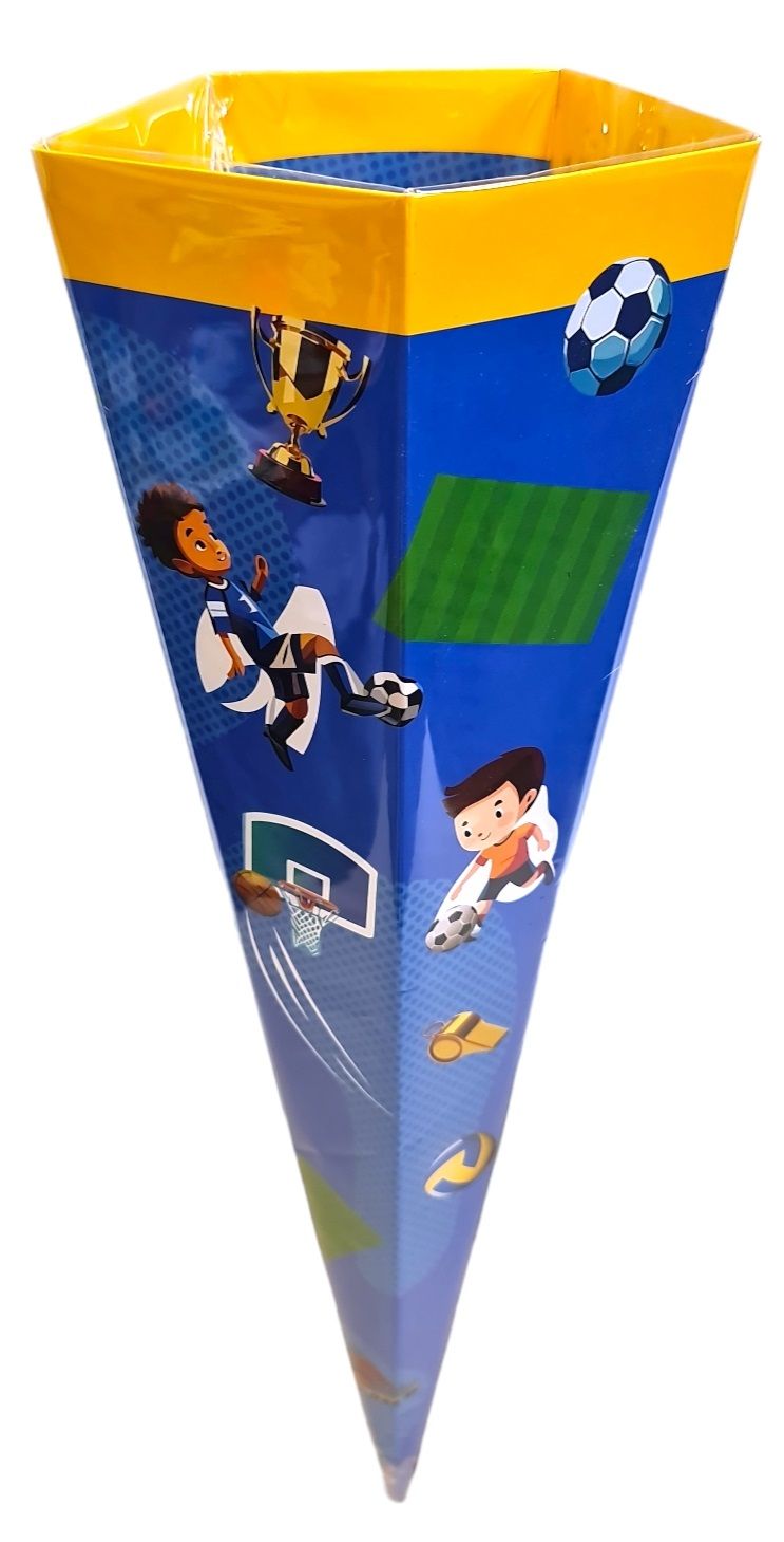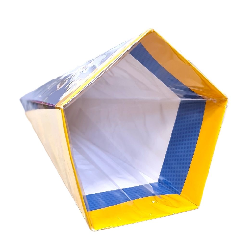 Forma odwróconego ostrosłupa o podstawie pięciokąta prawidłowego z celofanem z możliwością zawiązania wstążką.