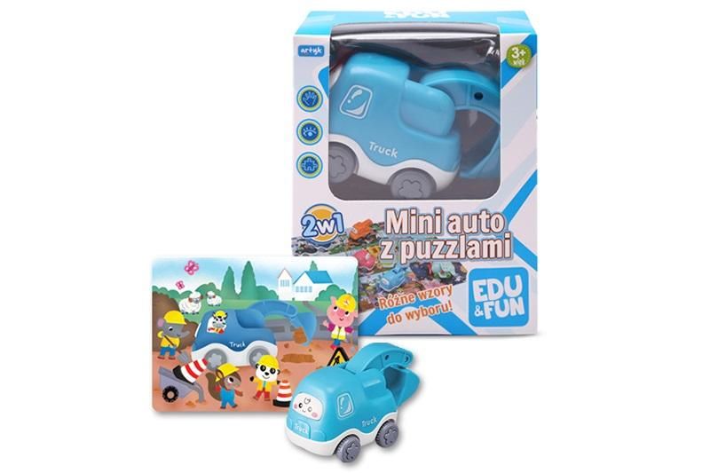 Mini auto z puzzlami koparka Opis: dł. auta 11 cm., napęd: pull back , ruchome elementy, puzzle 25 el., wym. opk: 12 x 15 x 7 cm., 3+