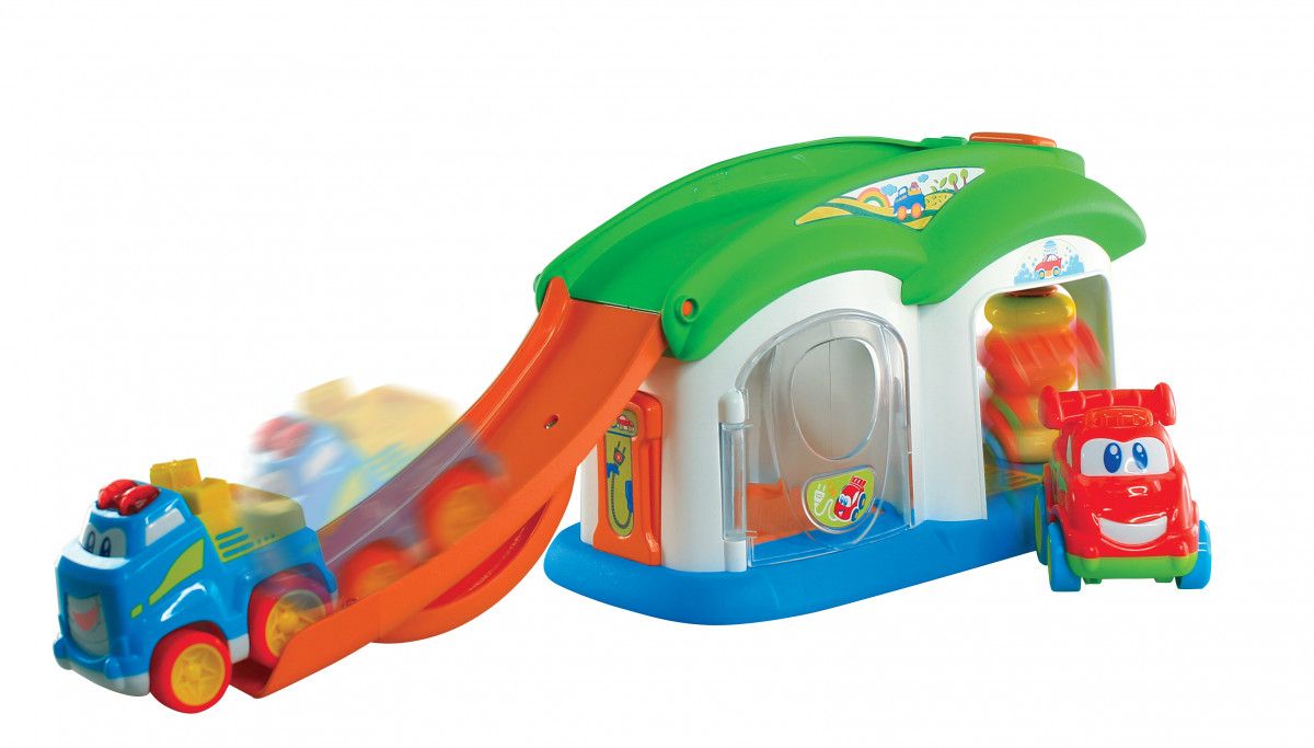 Prawdziwa gratka dla małych fanów motoryzacji. Stacja Obsługi Pojazdów składa się z myjni z obracającymi się szczotkami i stacji ładowania pojazdów. W zestawie znajdują się 2 samochodziki, które świecą i wydają dźwięki. Kiedy autka będą już czyściutkie i zatankowane, czeka na nie rozrywka! Na dachu stacji znajduje się rozkładana zjeżdżalnia, którą opuszcza się przyciskając pomarańczowy guziczek. Zabawka przeznaczona dla dzieci powyżej 12 miesiąca życia. Cechy: