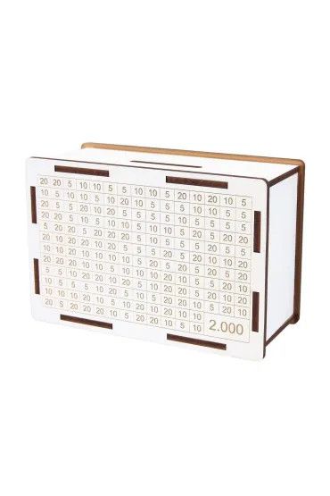 Dostępne: 15 Sztuk Lub zamów telefoniczne: 690 216 578Drewniana, ekologiczna skarbonka z grafiką celu 2.000zł. Na powierzchni skarbonki znajduje się tabelka, w której można wykreślać kolejne wartości nominałów banknotów lub bilonu w miarę dodawania gotówki. Po wykreśleniu wszystkich pól skarbonka będzie zawierać 2.000zł Posiada specjalny otwór na górze do wrzucania monet i banknotów. Skarbonka CRESCO to świetny prezent dla każdego na różne okazje. Skarbonka nie zawiera zawartości, ale po zakupie jest od razu gotowa na przyjecie gotówki :) Skarbonka sprzedawana jest już złożona w opakowaniu foliowym.