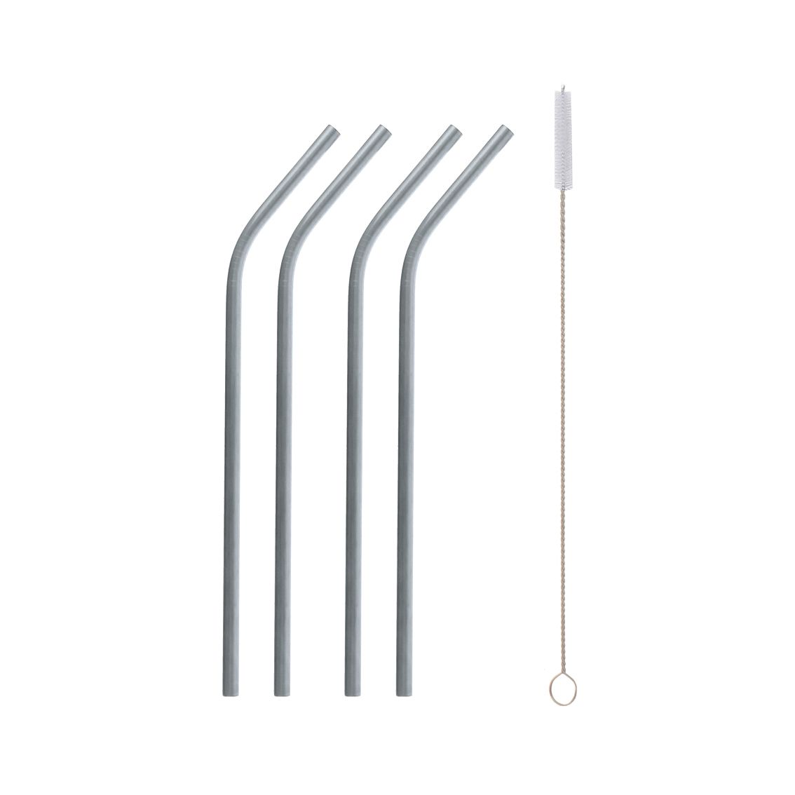 Rurki metalowe, srebrne, 2 proste + 2 zgięte i szczoteczka do czyszczenia