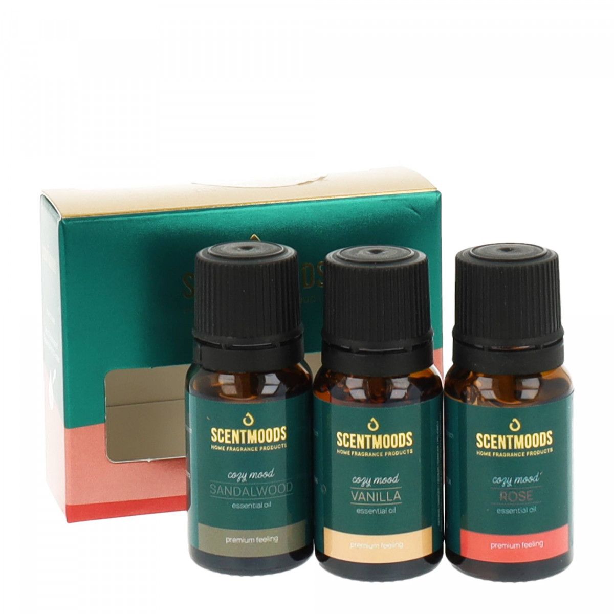 Dostępne: 5 Sztuk Lub zamów telefoniczne: 690 216 578Zestaw trzech olejków zapachowy Sandal Wood, Vanilla, Rose z serii Cosy Mood.