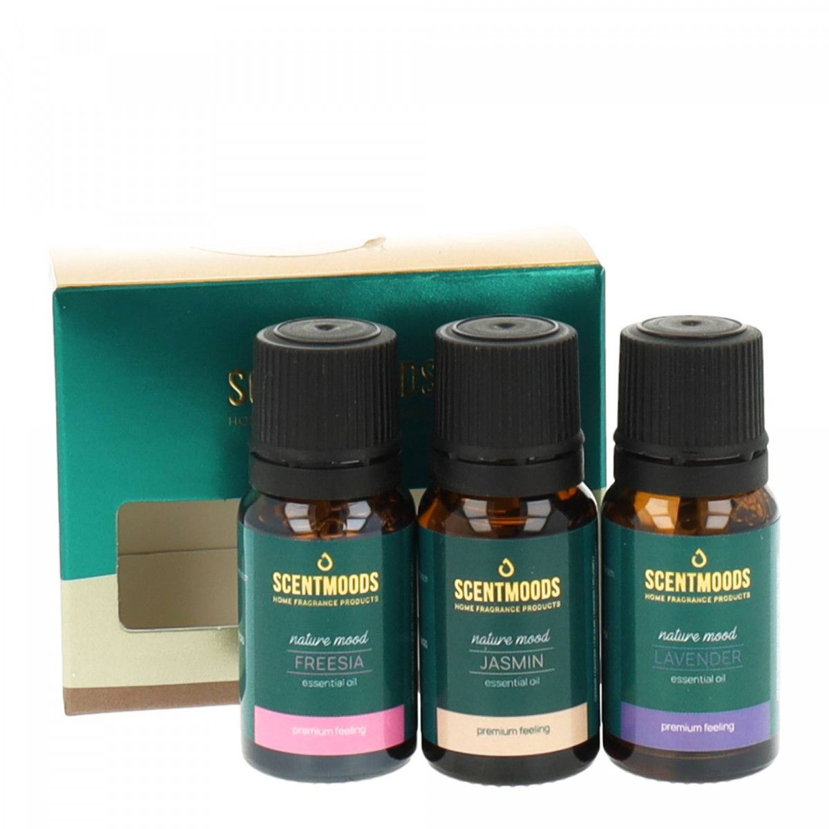 Dostępne: 4 Sztuk Lub zamów telefoniczne: 690 216 578Zestaw trzech olejków zapachowy Freesia, Jasim, Lavender z serii Nature Mood.