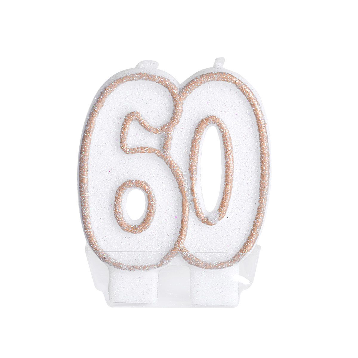 Świeczka jubileuszowa, pakowana pojedynczo, liczba 60, kolor: biały.