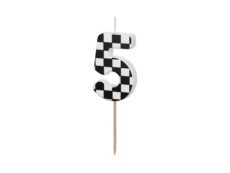 Dostępne: 54 Sztuk Lub zamów telefoniczne: 690 216 578Świeczka urodzinowa Cyferka 5 ze wzorem szachownicy, rozmiar ok. 5.5 cm.