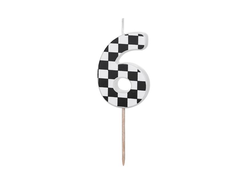 Dostępne: 18 Sztuk Lub zamów telefoniczne: 690 216 578Świeczka urodzinowa Cyferka 6 ze wzorem szachownicy, rozmiar ok. 5.5 cm.