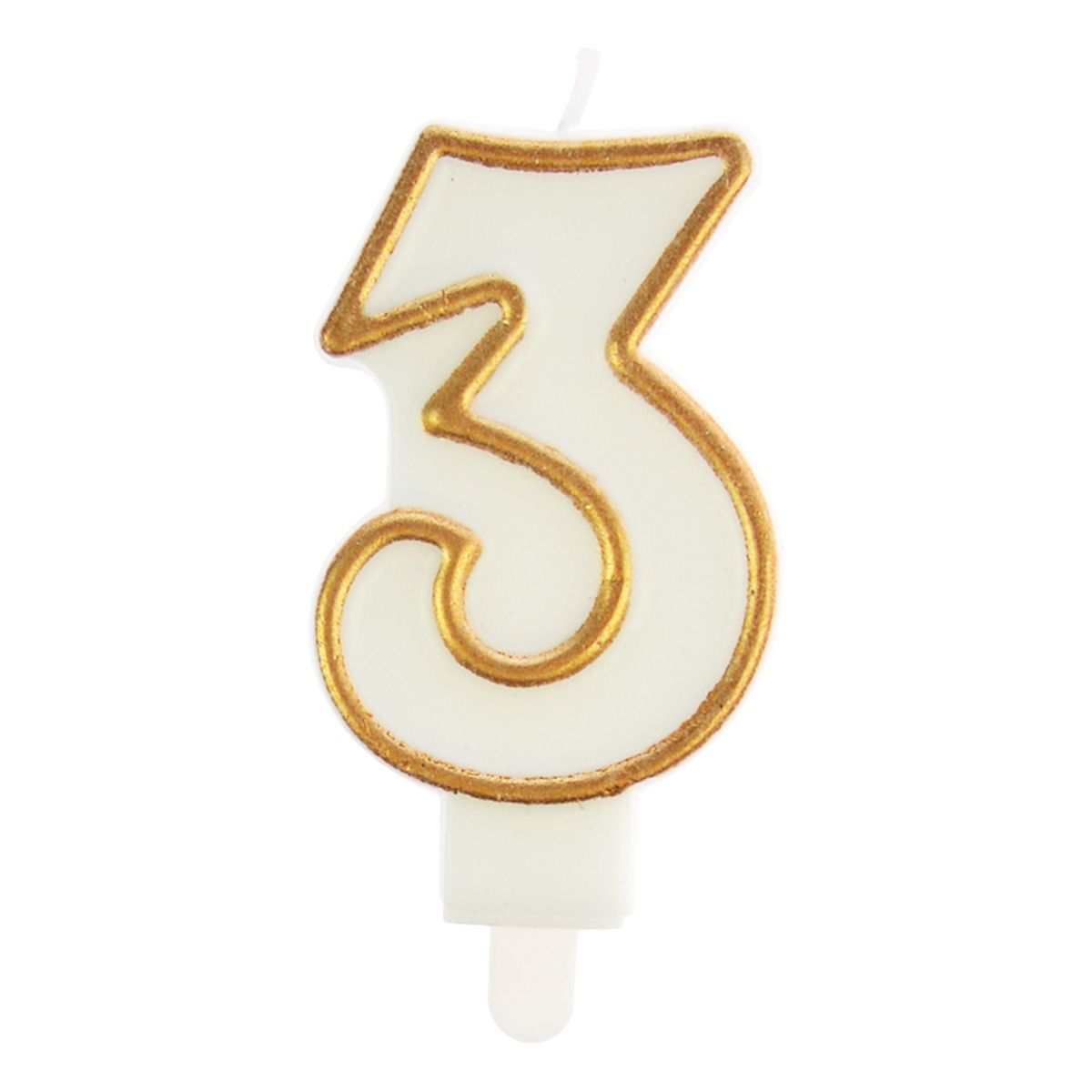 Świeczka urodzinowa cyferka nr 3 biała złota obwódka Arpex (DS0101ZLO-3-9906)