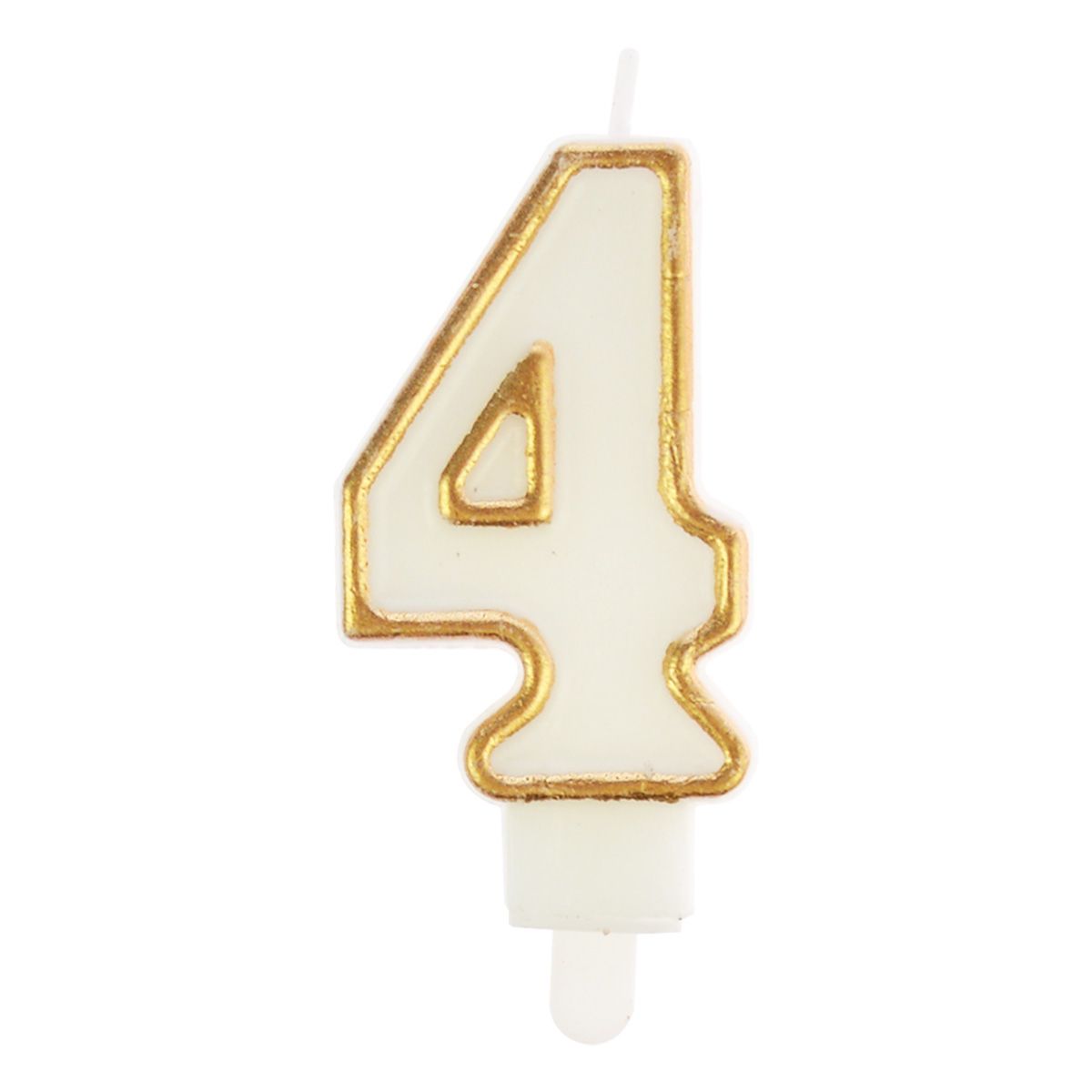 Świeczka urodzinowa cyferka nr 4 biała złota obwódka Arpex (DS0125ZLO-4-9906)
