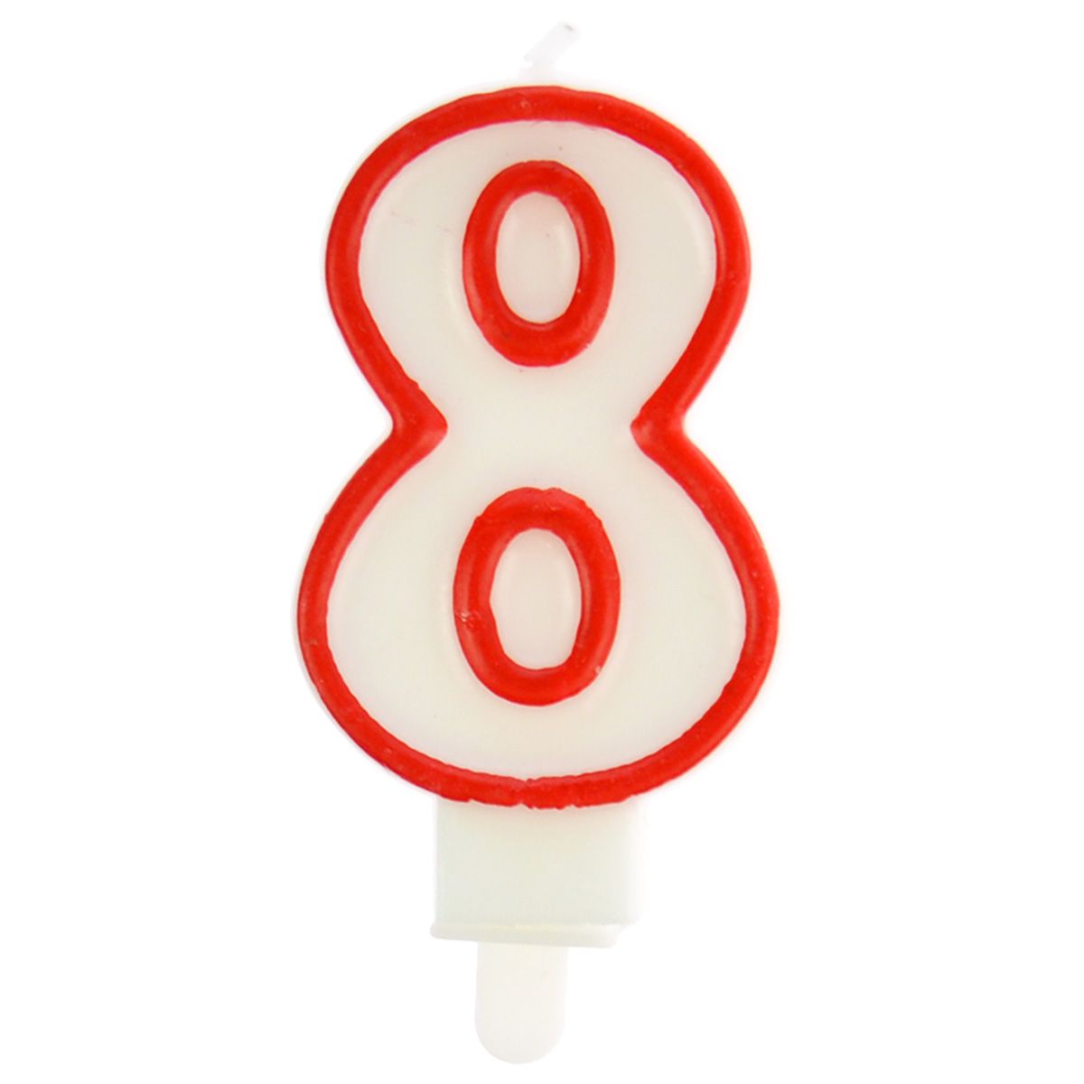Świeczka urodzinowa cyferka nr 8 biała czerwona obwódka Arpex (DS0194CZE-8-9906)
