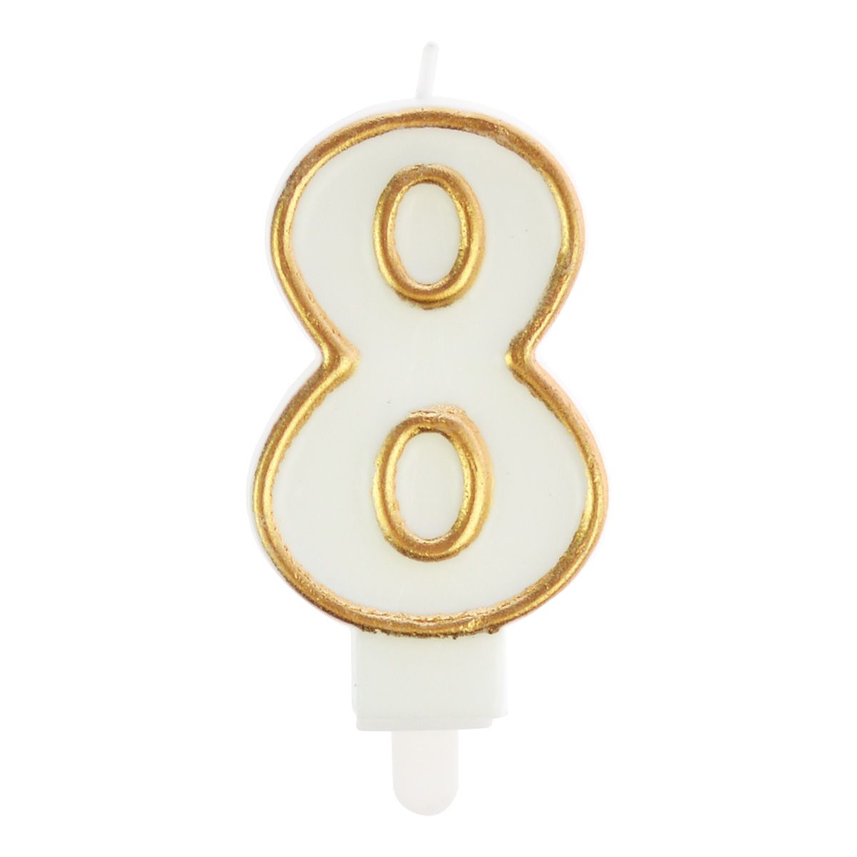 Świeczka urodzinowa cyferka nr 8 biała złota obwódka Arpex (DS0200ZLO-8-9906)
