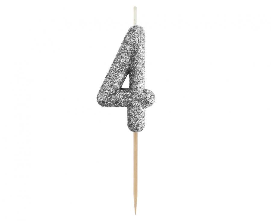 Świeczka urodzinowa piker cyferka 4, brokatowa czarna, 11x3.5 cm Godan (BH-SPC4)
