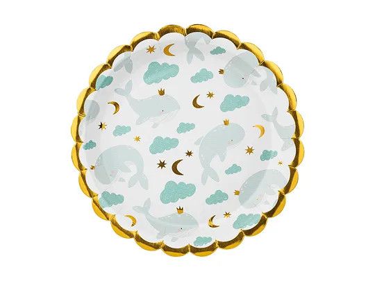 Talerz jednorazowy Wieloryby papier śr. 180mm 6 szt Partydeco (TPP78)