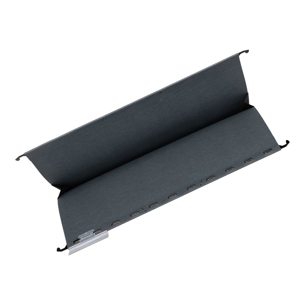 Dostępne: 50 Sztuk Lub zamów telefoniczne: 690 216 578Teczki zawieszkowe w formacie A4, wykonane z mocnego kartonu w grafitowym kolorze. U góry znajduje się przesuwny szyldzik z wymienną etykietą opisową. Harmonijkowe, płócienne boki zapobiegają wysuwaniu się dokumentów. W środku dwie pary nacięć do pasków skoroszytowych. Każda teczka może pomieścić do 330 kartek.