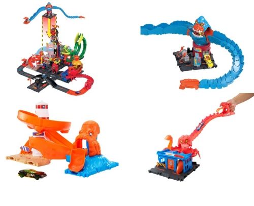 Ogromny goryl opanował stację benzynową w Hot Wheels City i ma smaka na pojazdy Hot Wheels Śmigaj samochodzikiem przez ramiona goryla i spróbuj bezpiecznie przemknąć przez jego paszczę, aby uniknąć pożarcia Ramiona są zginane i regulowane, aby zwiększyć poziom wyzwania, a każde z nich można podłączyć do innych torów Hot Wheels, pozwalając na rozbudowanie świata zabawy W zestawie znajdują się też dwa dystrybutory paliwa z ruchomymi wężami, które umożliwiają zatankowanie przed powrotem na drogę Połącz z innymi zestawami, aby powiększyć swoje miasto Hot Wheels City Zestawy są sprzedawane oddzielnie, zależnie od dostępności W zestawie znajduje się jeden samochodzik Hot Wheels Kolory i elementy dekoracyjne mogą się różnić