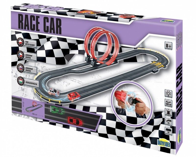 Weź udział w wyścigu i sprawdź, czy pokonasz przeciwników. Tor o długości 530 cm. W zestawie oprócz toru znajdują się 2 autka zasilane dynamo. Aby wprawić pojazd w ruch należy jak najszybciej kręcić dynamo - korbką. Wymiary toru po złożeniu: 55 x 188 cm Wymiary opakowania: 65 x 42 x 6 cm Wiek: 8+