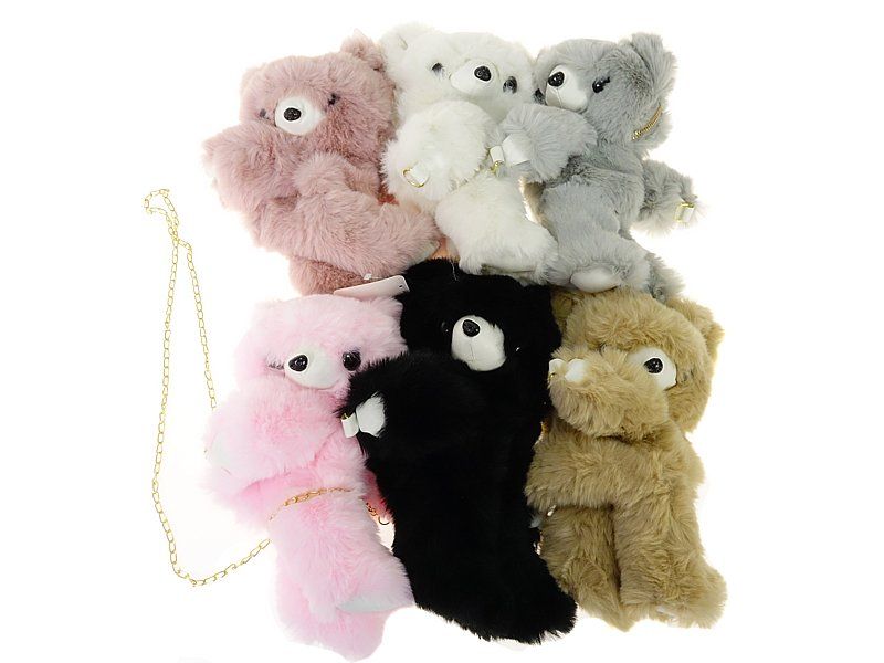 Dostępne: 6 Sztuk Lub zamów telefoniczne: 690 216 578torebka pluszowa miś, z łańcuszkiem na ramię, mix kolorów, 30x13x10cm