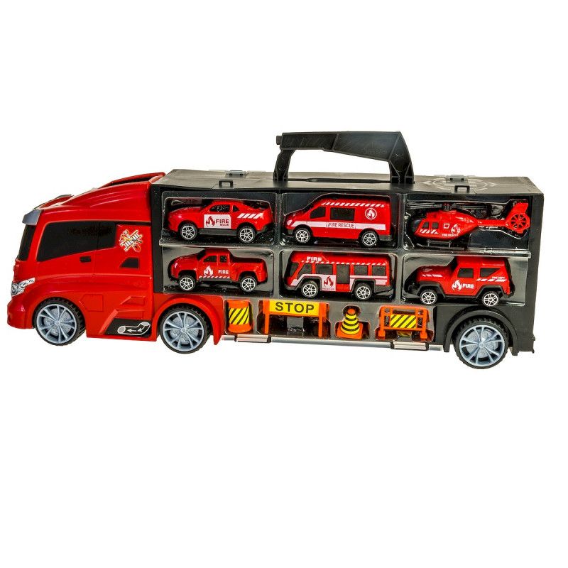 Każde auto posiada w walizce osobną przegrodę a kabina ciężarówki może służyć jako wygodny wyjazd by ruszyć do zabawy.